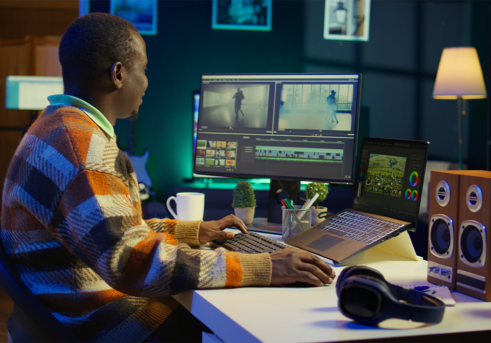 Cinematic video editing for Films,commercials, social media, and branded content, delivering polished visuals and strong storytelling.